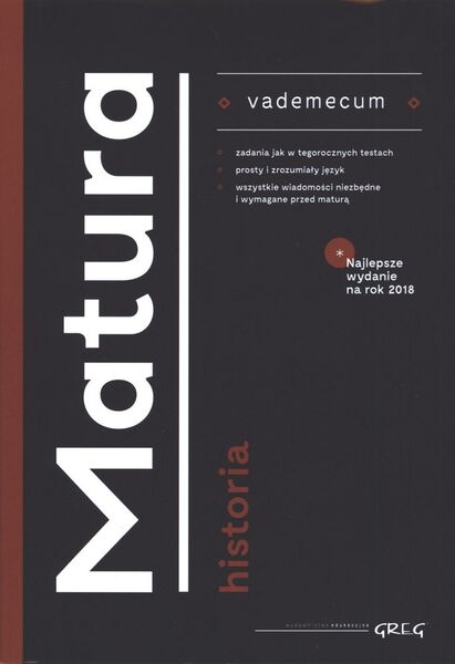 Vademecum Matura - Wydawnictwa GREG to książka zawierająca całość materiału potrzebnego do przygotowania się do matury w jej obecnie obowiązującej formule. Jest zgodna z najnowszą podstawą programową, a treści obejmujące materiał z klasy I dodatkowo oznaczono graficznie.